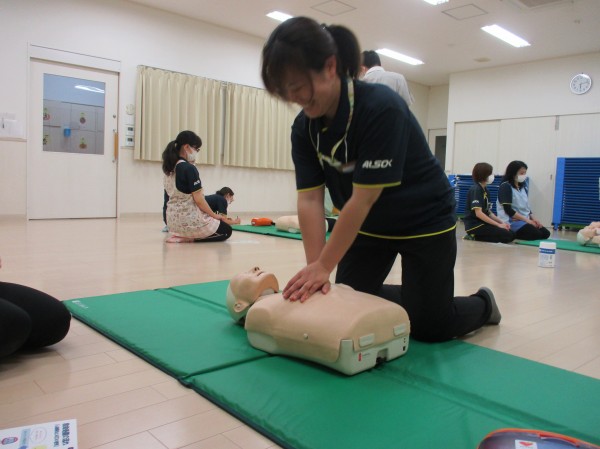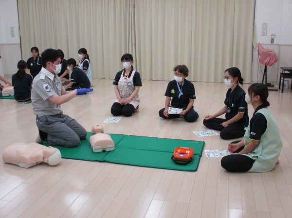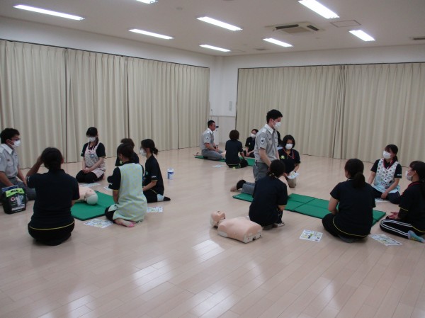 先日、消防士さんをお迎え致しまして、職員向けに【AED講習会】を行いました。
