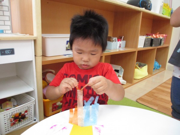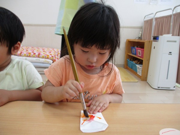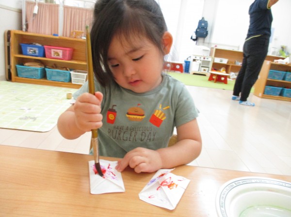 ペンで描くことやにじみ絵等初めての製作活動にとても意欲的でした。