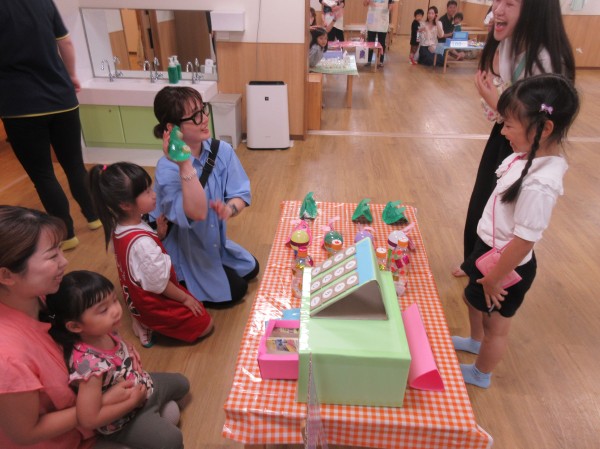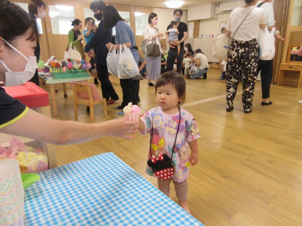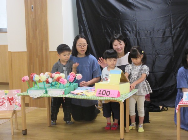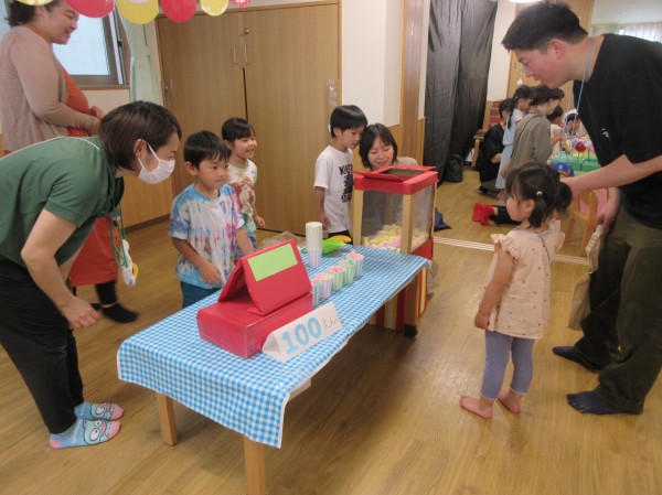 幼児クラスの子ども達は、保護者の方と一緒にお店屋さん・お客さんに前半と後半で分かれて楽しみました。