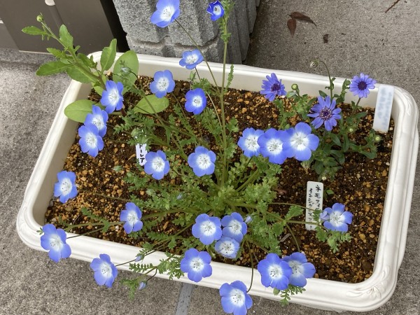 フェリシアは、ブルーデージーと同じルリヒナギク属(フェリシア属)の仲間です。パステルカラーのブルーやピンクの小さな花がたくさん咲いた姿はとても可愛らしいです。