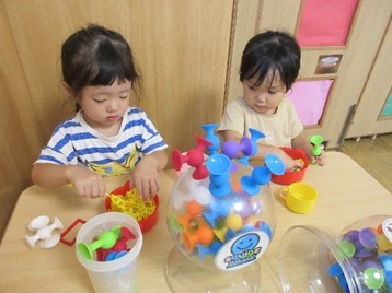 室内遊びでは、レゴを一生懸命作ったりおままごとをしたりして遊びました。