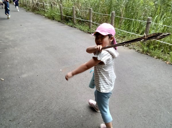 周辺を自然散策すると、大きな筍の皮も遊び道具になるのでした‼