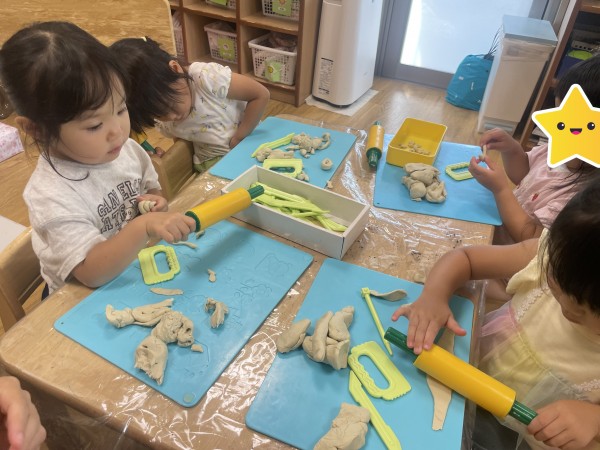 お部屋に戻ってからは、粘土やお絵描き、ブロック遊び等好きな遊びを選択し、じっくりと夢中になって遊んでいました。