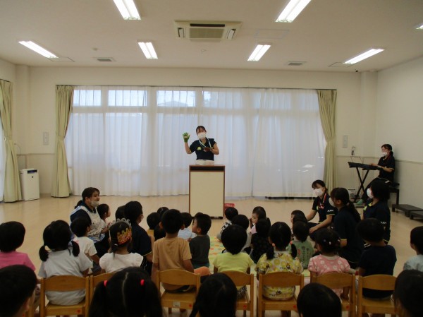 先生からの出し物は『手袋シアターのどんぐりころころの歌』や『秋の食べ物のクイズ』、『ピコピコテレパシーのゲーム』と盛りだくさんでした(^^♪