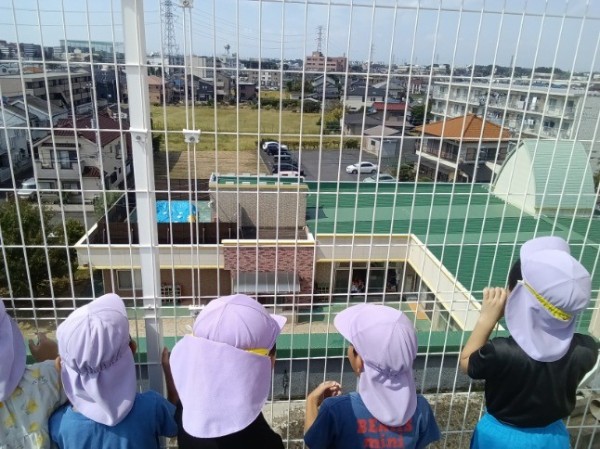 いるか組・くじら組は【夢民しき】さんの外階段を上がり、建物の中を通らせて頂き、屋上まで上がらせて頂きました。