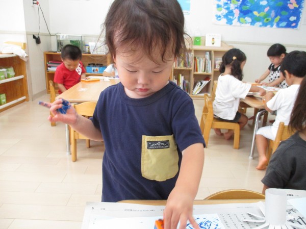 こどもの家・志木中宗岡 らっこ組(2歳児クラス)敬老の日プレゼント製作