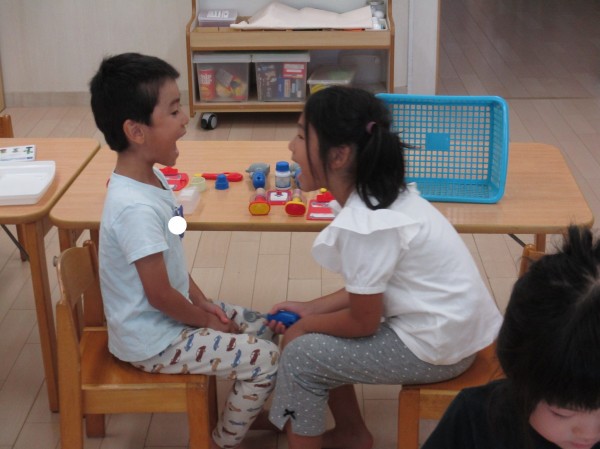 なにやら楽しそうな声がくじら組(5歳児クラス)さんのお部屋から聞こえてきました…どうやらお部屋遊びを楽しんでいるようです(*^^*)