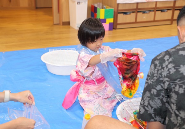 染めたTシャツが運動会の衣装になり、みんな揃って着るのが楽しみです。