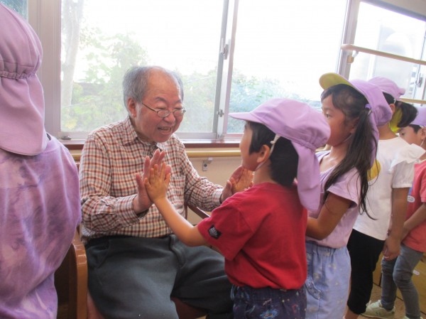 最後にくじら組の子ども達とおじいちゃんおばあちゃんはハイタッチをしてからお別れです。
