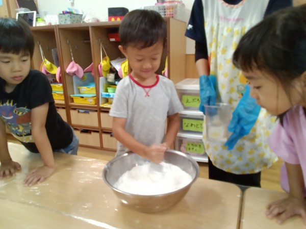 たんぽぽ海神町南保育園 食育「お月見団子づくり」
