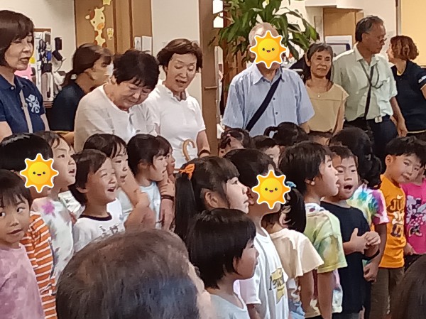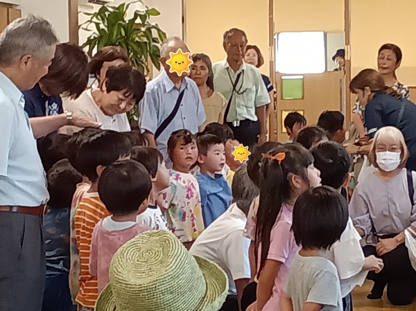膝取りゲームでは、自分のお祖父ちゃんお祖母ちゃんじゃなくても、みんな笑顔で楽しみました。