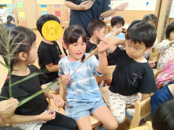 「保育園の近くにもたくさん咲いているよ」と教えてもらった子どもたちは、早速ススキを探しに行くのでした。