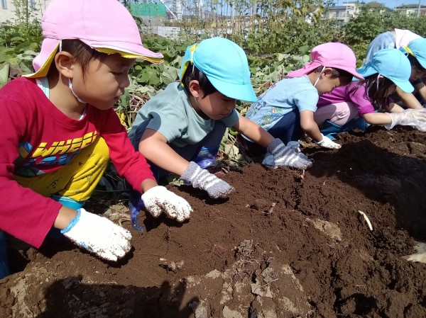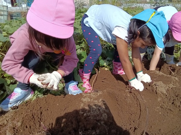 こんにちは!いつも保育園ブログをご覧いただきありがとうございます。今回は、4・5歳児の『お芋掘り』の様子を掲載いたします。