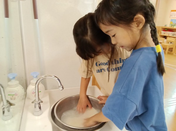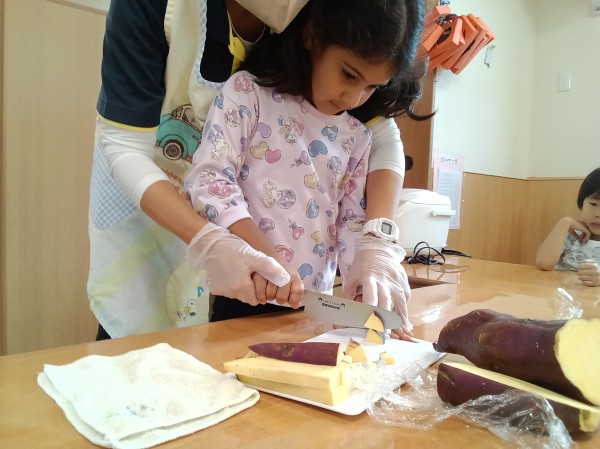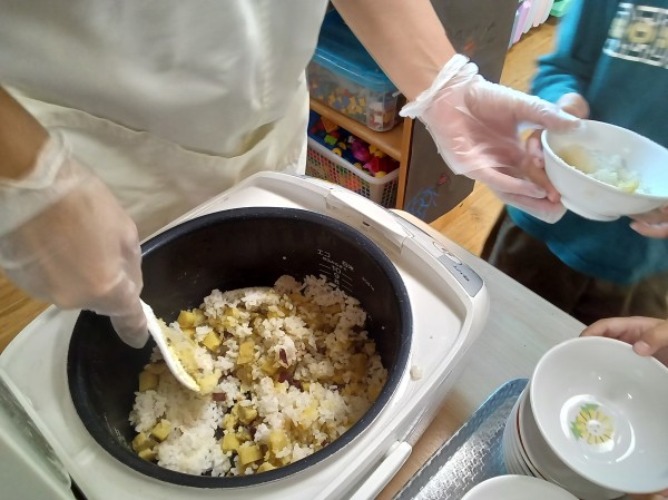 みんなで掘ってきたさつま芋で、お芋ご飯を作りました。