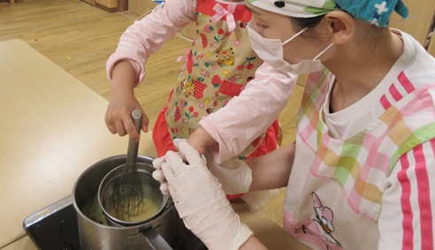 4歳児、5歳児クラスの子ども達がみそ汁作りをしました。