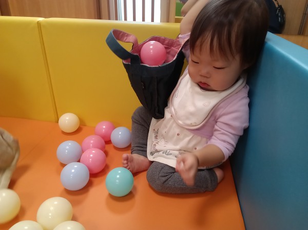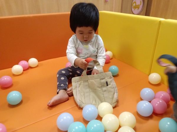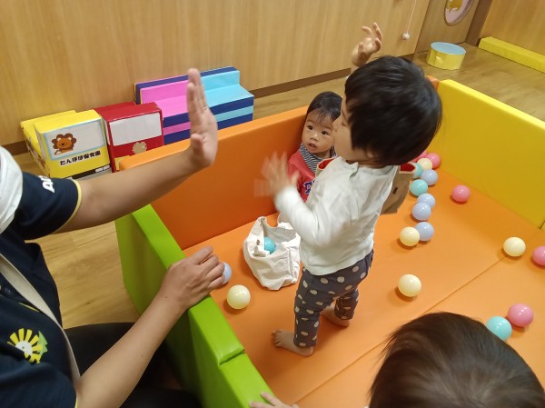 お部屋でボールプールをして遊びました。