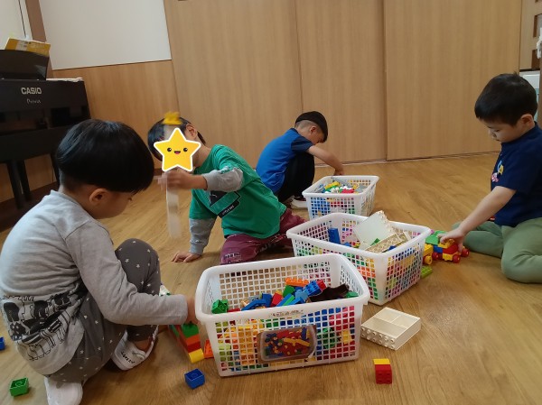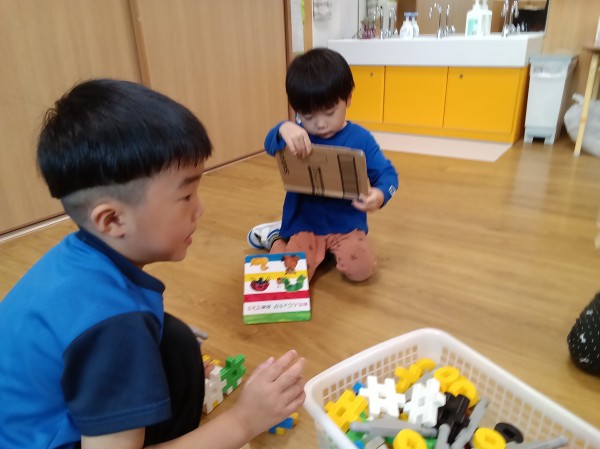 今日からうさぎ組の部屋の壁を取って、うさぎ組からぞう組までの部屋を一つにしました。