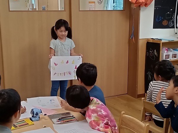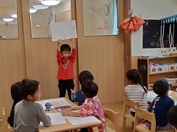 運動会で頑張ったことや、楽しかったことを絵にして発表しました。