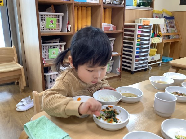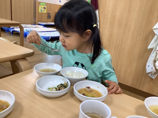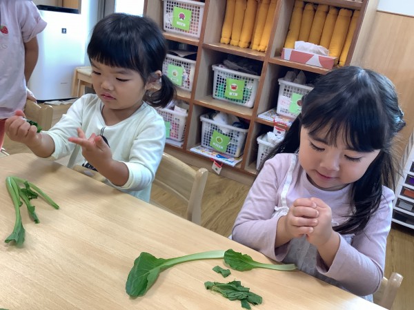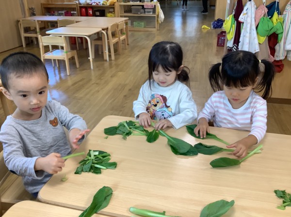 ちぎった小松菜は、給食の「納豆の青菜和え」で、おいしく食べました。