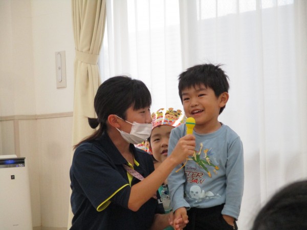 4人のお友だちに、名前や好きな遊びをインタビューで聞くと、とっても大きな声で上手に答えてくれました(*^▽^*)