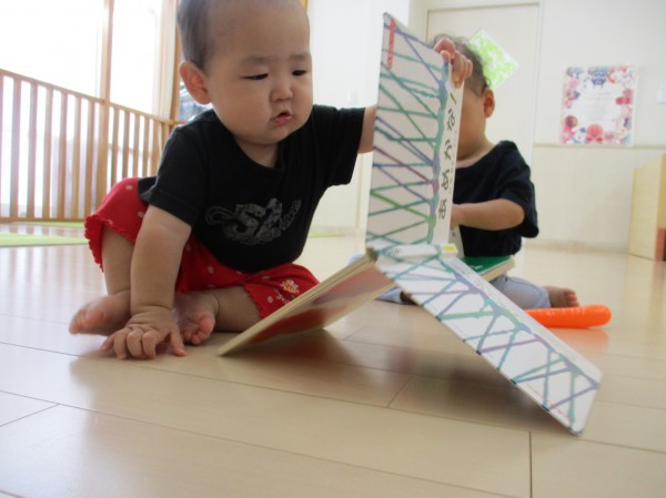 こどもの家・志木中宗岡 たまご組(0歳児クラス)絵本に興味津々(`・ω・´)