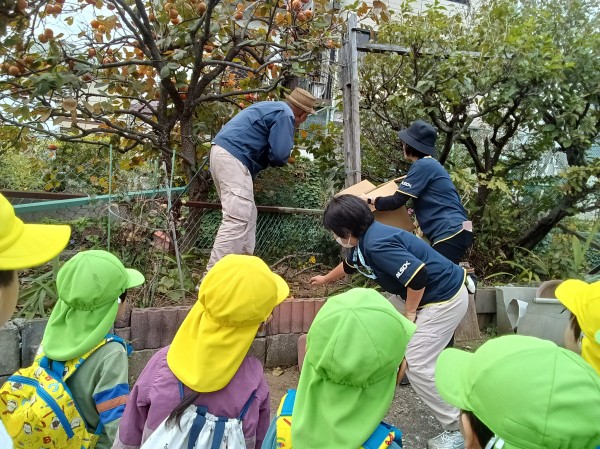 ご近所の方に、今年も柿を頂けることになりました。子どもたちの応援のおかげで、たくさんの柿を採ることができました。今年もみんなで干し柿を作ろうと思います‼