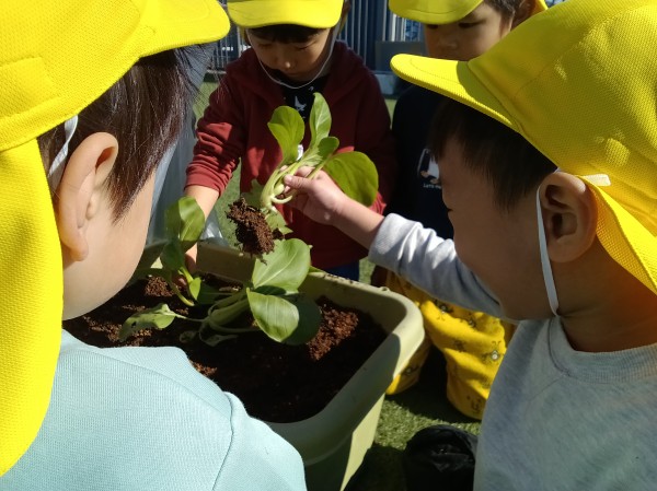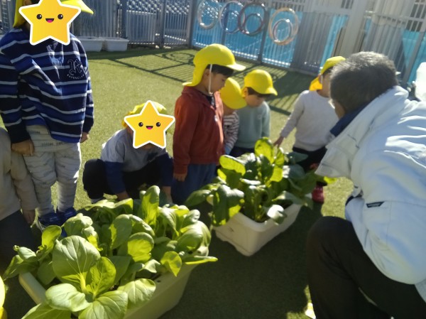 たんぽぽ海神町南保育園 小松菜・チンゲン菜収穫