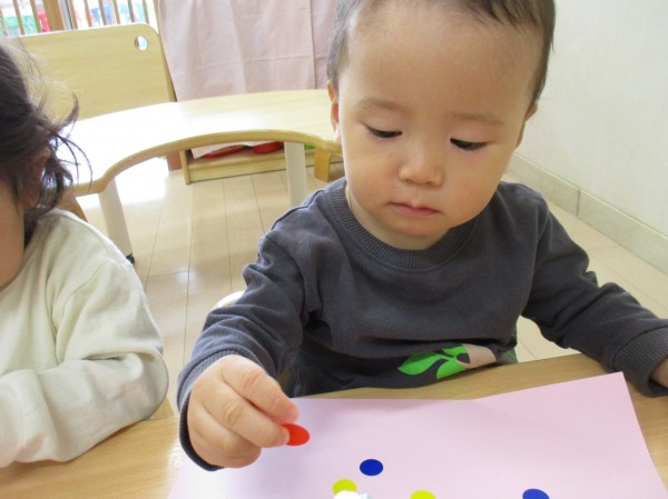 こどもの家志木中宗岡 貼り貼り(*'ω'*)♪ たまご組(0歳児)