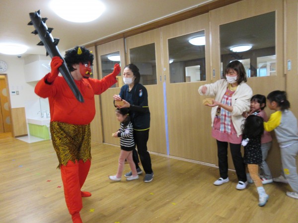 保育園でも2月2日に節分の豆まきを幼児組の子どもたちが行いました。