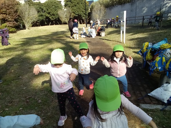 2クラスで、公園に散歩に行きました。