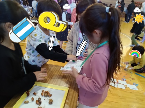 この日は近隣の小学校での交流会にご招待いただきました。学校に行ける事が嬉しい反面少しドキドキしている様子の子どもたち。学校に着くと小学生のお兄さんお姉さんが秋の自然物を使ったゲームを沢山用意して待っていてくれました。園では年長児として堂々と振舞っている子どもたちもこの日ばかりは緊張気味、小学生のお兄さんお姉さんに話しかける声が小さくなってしまう子もいます。そんな仲間の姿を見て、一緒に声をかけてくれる頼もしい子もいました。子どもたちの様子をご覧ください!