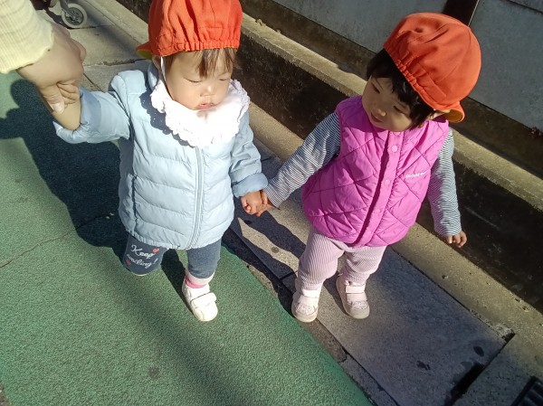 今日は保育者と手をつなぎ、ゆっくりと歩きながら公園に行きました。お友だちとの関わりも増えてきた子どもたちの様子をご覧ください。