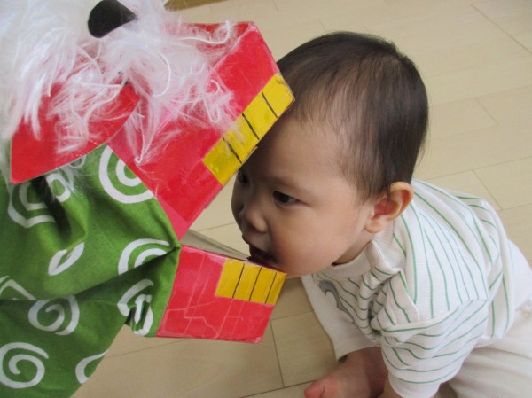 こどもの家・志木中宗岡 獅子舞さん、こんにちは(*^▽^*) たまご組(0歳児)