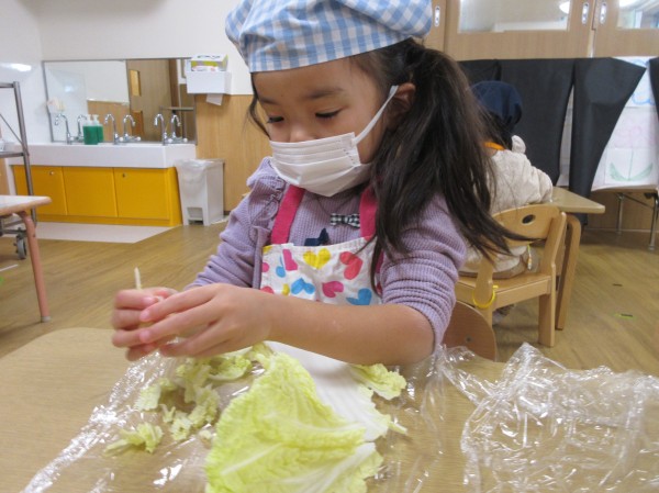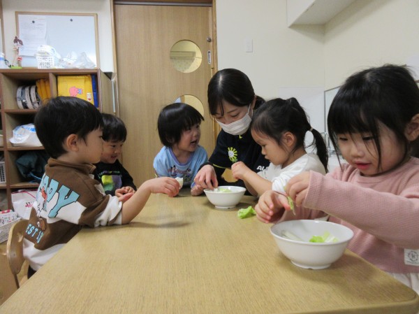 5. 『たんぽぽ西船橋駅前保育園』食育 ~白菜に触れよう~