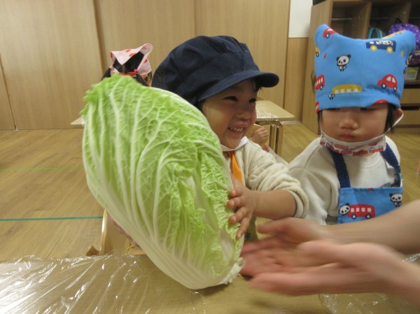 今回は、1・2・3・歳児の食育「白菜に触れてみよう」の様子をお伝え致します。