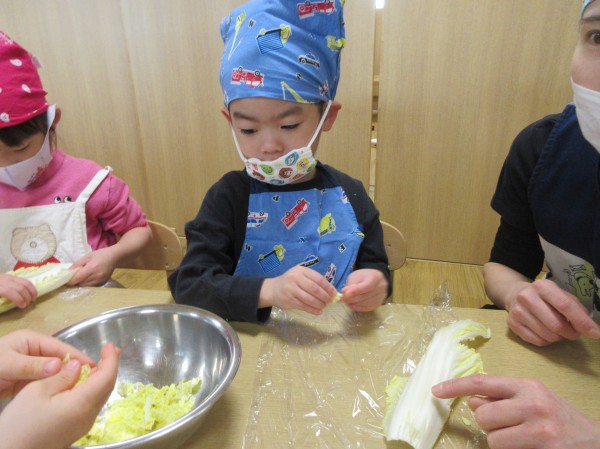 『たんぽぽ西船橋駅前保育園』食育 ~白菜に触れよう~