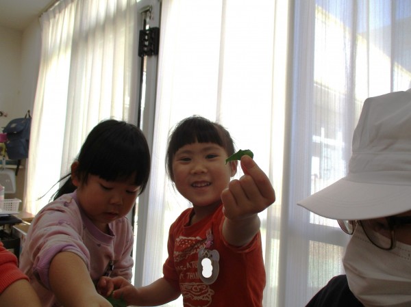 「下の方は(茎)硬くて大変だ!」とお話も楽しみながら取り組んでいました。