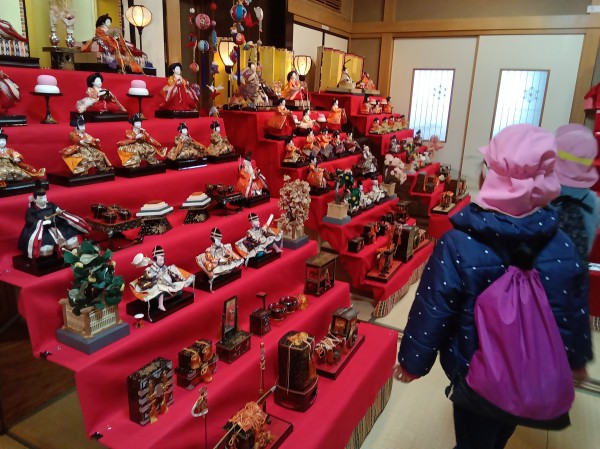 施設内には、様々なお雛様が飾られていて、こども達は興味津々に観ていました。