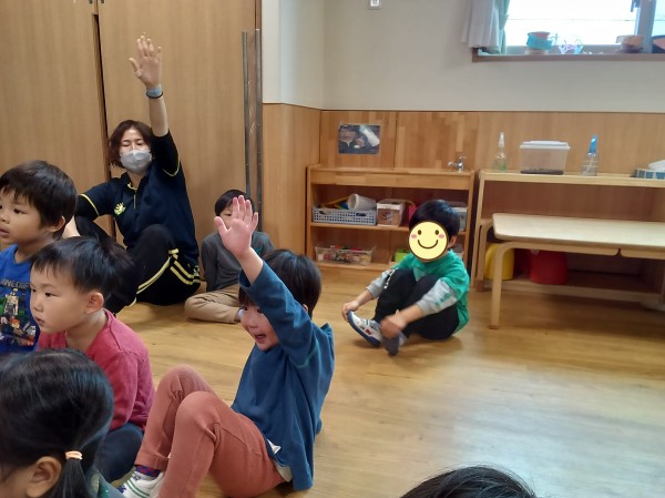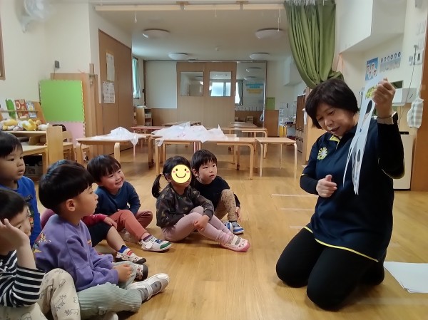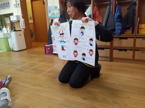 3歳児のぱんだ組の子どもたちに、健康教育を行いました。