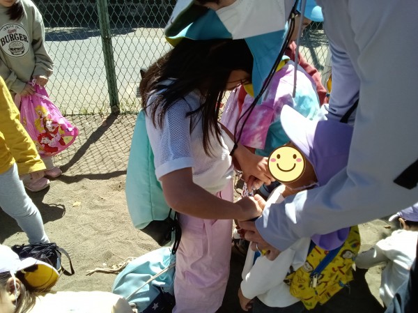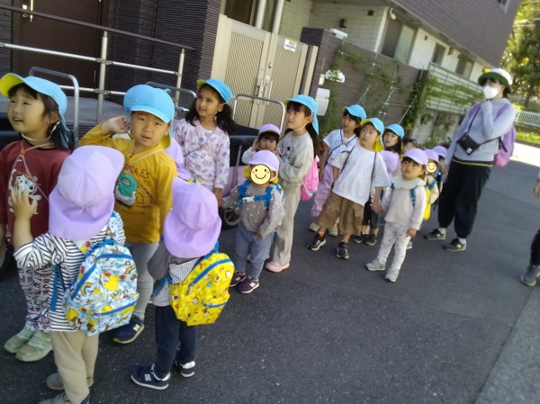 今日は、うさぎ組(2歳児)とぞう組(5歳児)の2クラスで、お散歩に行きました。