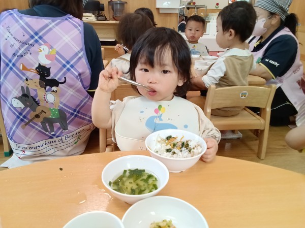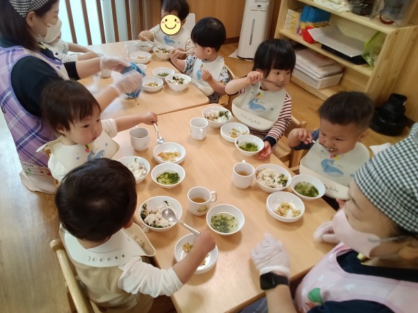 新入園のお友だちと、初めて一緒にご飯を食べました。