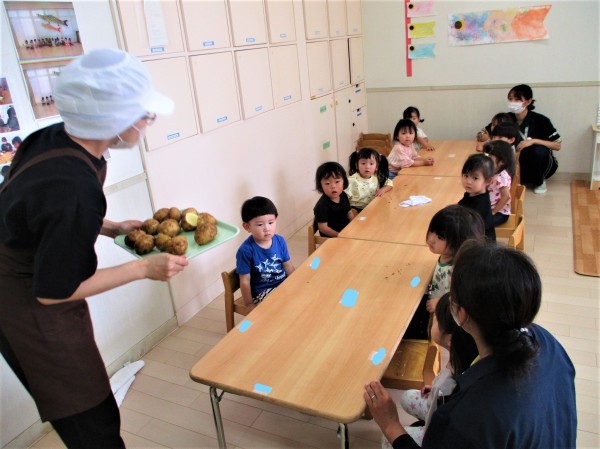 そんならっこ組さん、今回は食育活動でじゃがいも洗いを体験しました!その時の様子をお伝えします。