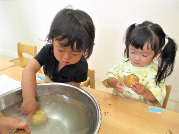 こどもの家・志木中宗岡 食育 じゃがいも洗い(らっこ組)