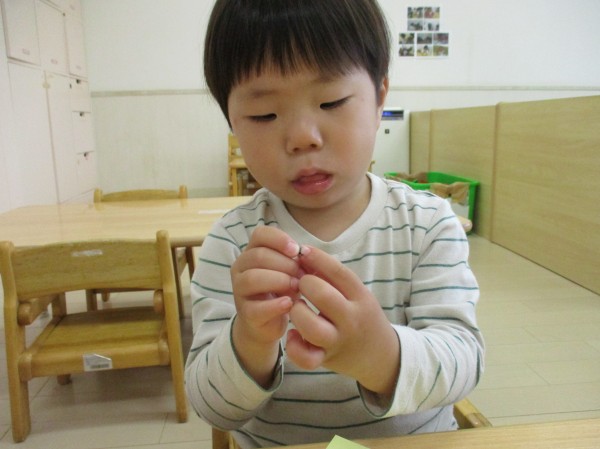 一緒にシールもしたらもっと楽しい!がんばって台紙から自分で剥がしていました。