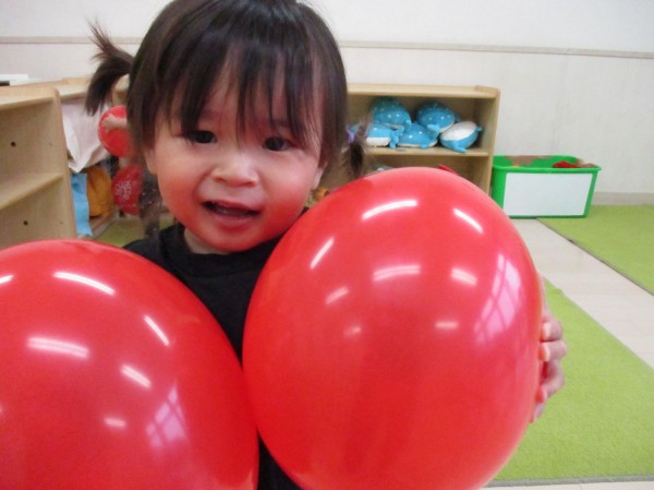 自分の顔よりも大きい風船をもらったあひる組の子ども達!抱えるだけでもう楽しいです♡