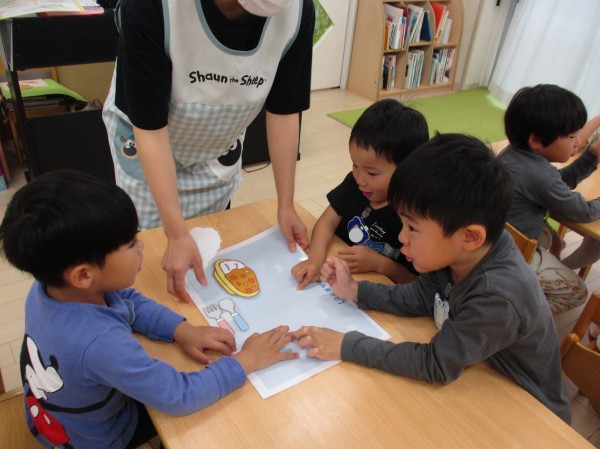 グループのお友だちとこっちかな?いや、ここだと思う…と話し合いをしながら答えていきます。