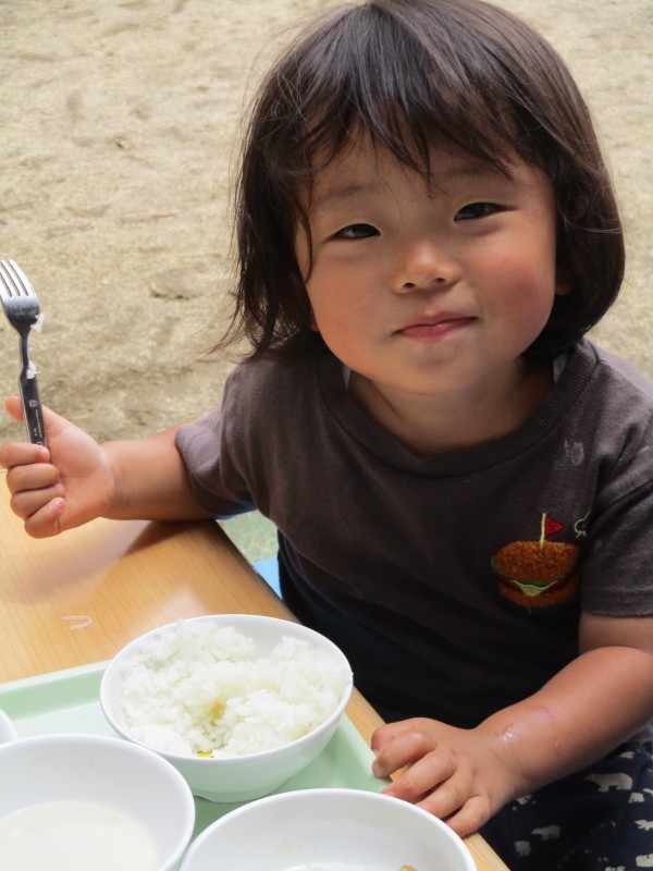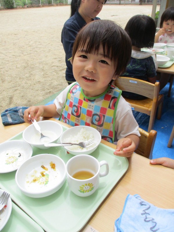 園庭遊びを終えて、しっかりと手を洗い、席に着いたら「いただきます!」と元気な声が聞こえてきました。