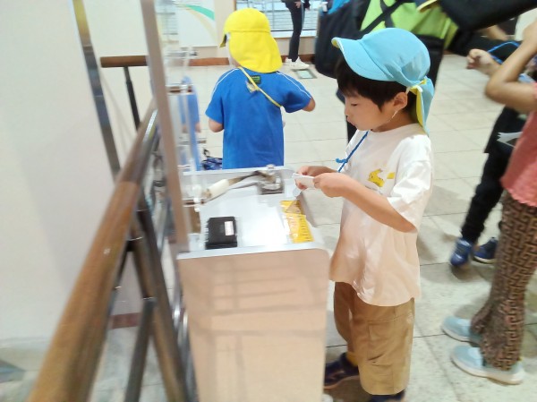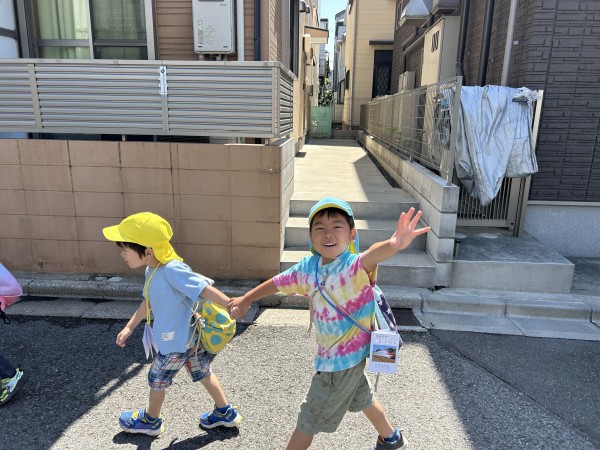 6月にも関わらず気温が高くなると予想されたこの日、水分補給をしっかりし準備を整えました。4歳児の子どもたちは、はじめて電車でお出かけです。ワクワクドキドキ出発しました。
