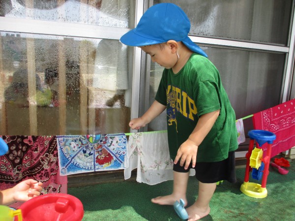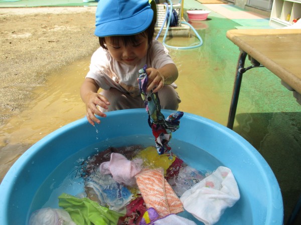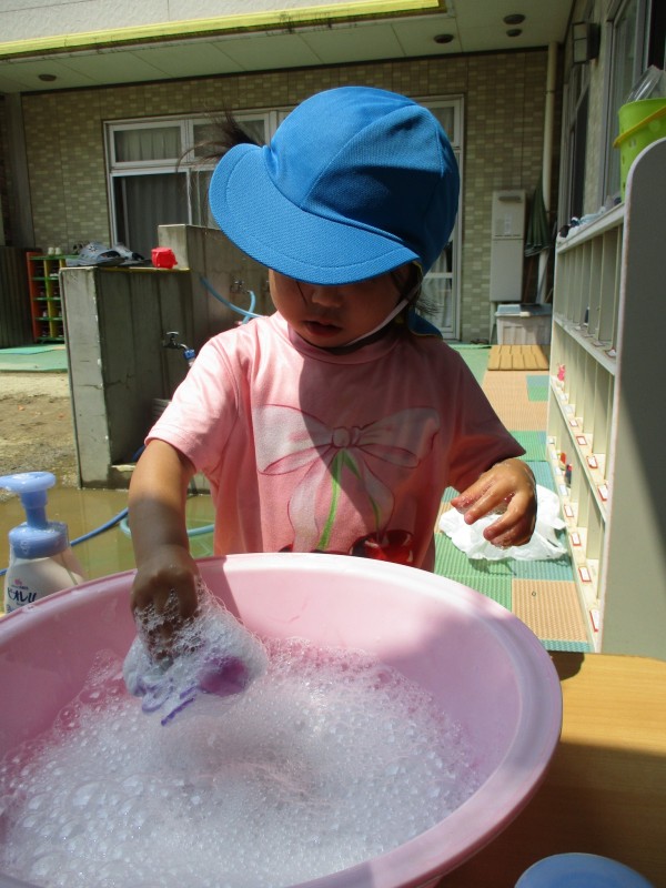 泡を出して洗濯ごっこをしたり、これからも夏ならではの遊びを楽しんでいきたいと思います。