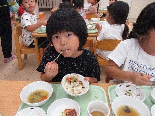 こどもの家・志木中宗岡 もぐもぐ食べてパワー満タン!! いるか組(4歳児クラス)